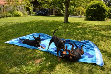 Léto ovšem trávíme na chatě, takže krysaříci mají k dispozici zahradu a moc se jim tam líbí a nejen jim. Stačí se podívat na pár fotek z letní idylky naší smečky.